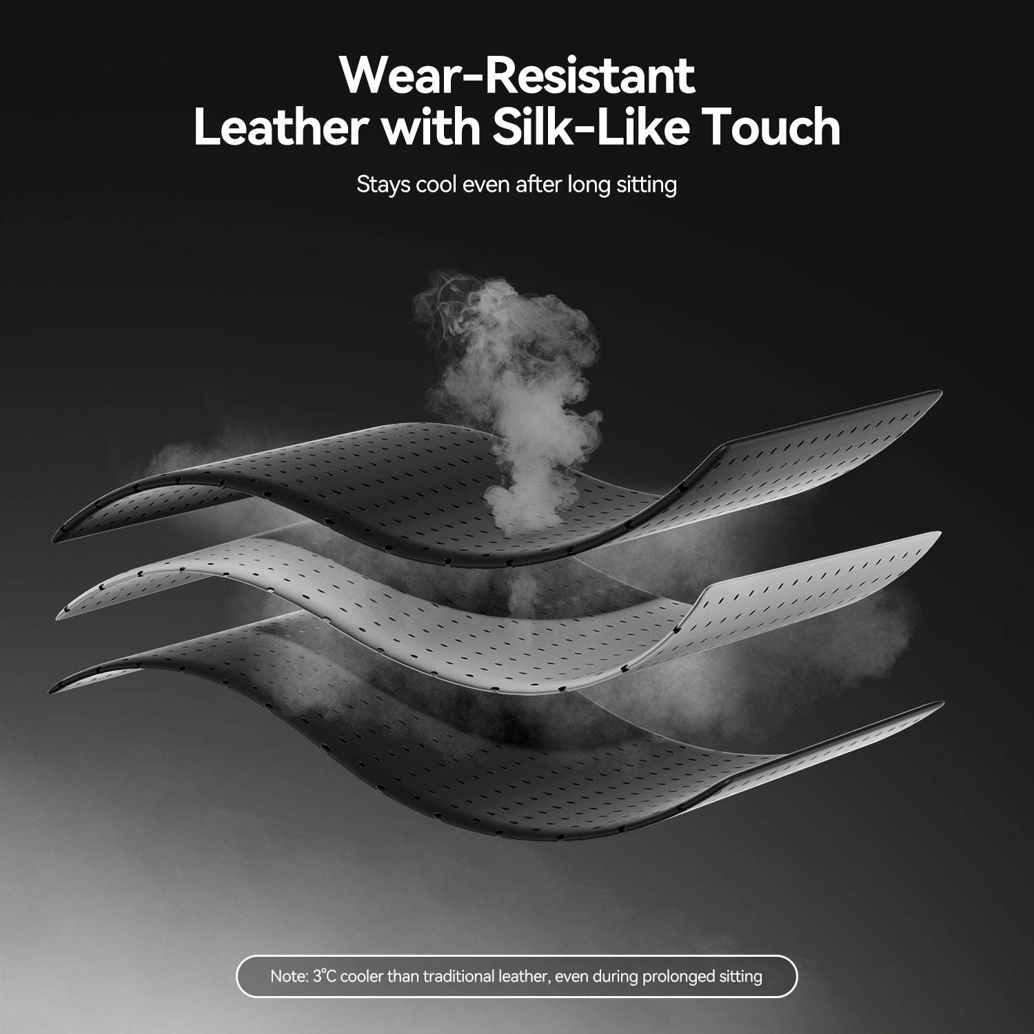 Ultimate Climate Comfort:Stay comfortable year-round with our advanced climate control system. Dual high-powered fans cool the seat to 66.2°F, keeping you dry and refreshed, while integrated graphite heating elements warm it up to 122°F for cozy relaxation. With a three-level adjustment, you can easily switch between cooling and heating modes to suit your needs—ensuring focus and comfort no matter the weather.Elastic Lumbar Massage:The lumbar support also includes a built-in massage feature with two high-frequency vibration motors to keep you relaxed and comfortable during long gaming or work sessions.Dynamic Tracking Lumbar Support:Achieve personalized support with our adaptive lumbar system, designed to move up, down, forward, and back to align with your spine perfectly. Ideal for users between 5'9" and 6'2", this lumbar cushion adjusts with a simple turn of the knob and provides ongoing support through its flexible design. Lock it into your preferred position with ease, ensuring long-term comfort during extended sessions.3D Erogonomic Neck Pillow:The newly designed fixed 3D headrest offers individual support adjustments on both sides, with a 60° angle of adjustment. It also provides orbital movement with 1.25 inches of forward and backward motion, along with 4 inches of vertical adjustment, delivering effective neck support for users between 5'3" and 6'4".360° Adjustable Armrests:Enjoy 360° rotation on the main shaft and 40° inward/outward adjustment on the secondary shaft. These armrests can be folded up by 20° and adjusted by 3.54 inches in height and 2.75 inches in depth, ensuring you find the perfect ergonomic position every time.